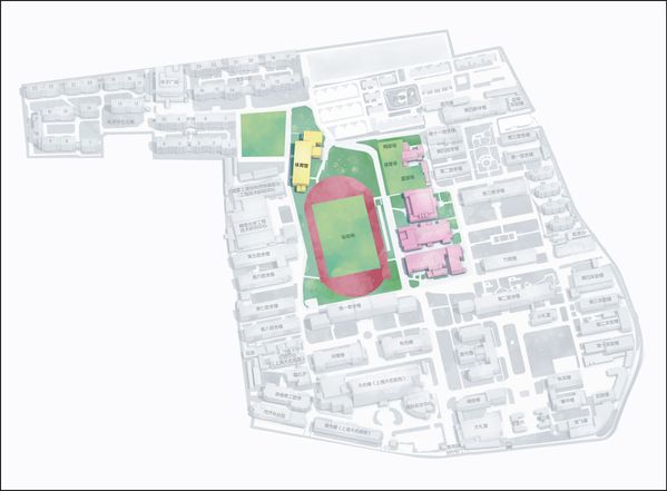 东至竹暄楼西侧南北道路、南至运动场南侧道路、西至五六七八号宿舍楼处南北道路、北至家属院围墙