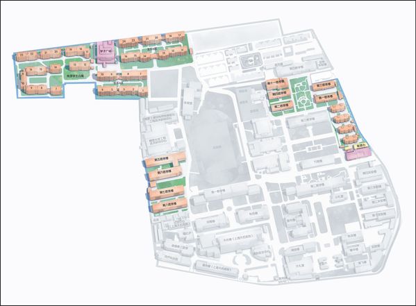 桃李与生乐公寓、1-4号与11号楼学生宿舍、五六七八号宿舍楼区域