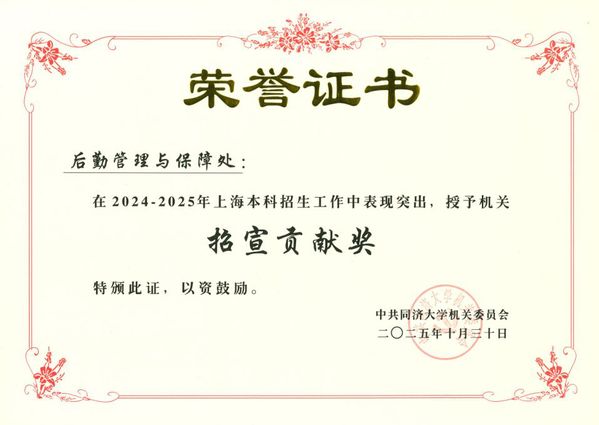 11月3日,2025年秋季学期支部书记例会暨上海本科招生工作会议在四平路校区举行。会议表彰了2024-2025学年上海本科招生先进,后勤处荣获上海本科招生工作“招宣贡献奖”。