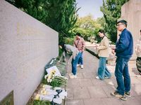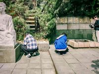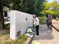 4月2日上午,四平路校区一·二九纪念园内松柏含翠,庄严肃穆,40余名师生代表在工作人员的细致讲解与引导下,迅速投入到劳动实践中。有的手持软布,蘸取清水,小心翼翼地擦拭纪念碑的每一处纹路,让镌刻在纪念碑上的英烈事迹愈发清晰可辨;有的握着小铲子,弯腰俯身,仔细清理碑座周边的杂草,不放过任何一处卫生死角;有的手提水桶,认真冲洗路面的灰尘与落叶,让整个纪念园在劳动中焕发洁净肃穆的风采。劳动结束后,全体师生在纪念碑前整齐伫立,低头默哀,向革命先烈致以最崇高的敬意,随后有序走上前,将手中的白色菊花轻轻放在碑前,以朴素而真挚的方式缅怀先烈、寄托哀思。