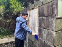 3月31日,一场将劳动教育与校史教育、爱国主义教育紧密结合的劳动育人主题活动在沪西校区举行。二十多位师生代表手持扫帚、抹布、毛笔与油漆,怀着崇敬之心,分别对校区内的三处不同时代的英烈墓址进行了细致的维护。大家分工协作,有的轻轻扫去四周的落叶,有的仔细擦拭墓碑上的浮尘,有的则小心翼翼地用毛笔对碑文进行“描红”修复。通过身体力行的劳动和触及灵魂的教育,让师生们触摸历史、感悟初心,将英烈精神与家国情怀深深植根心底。